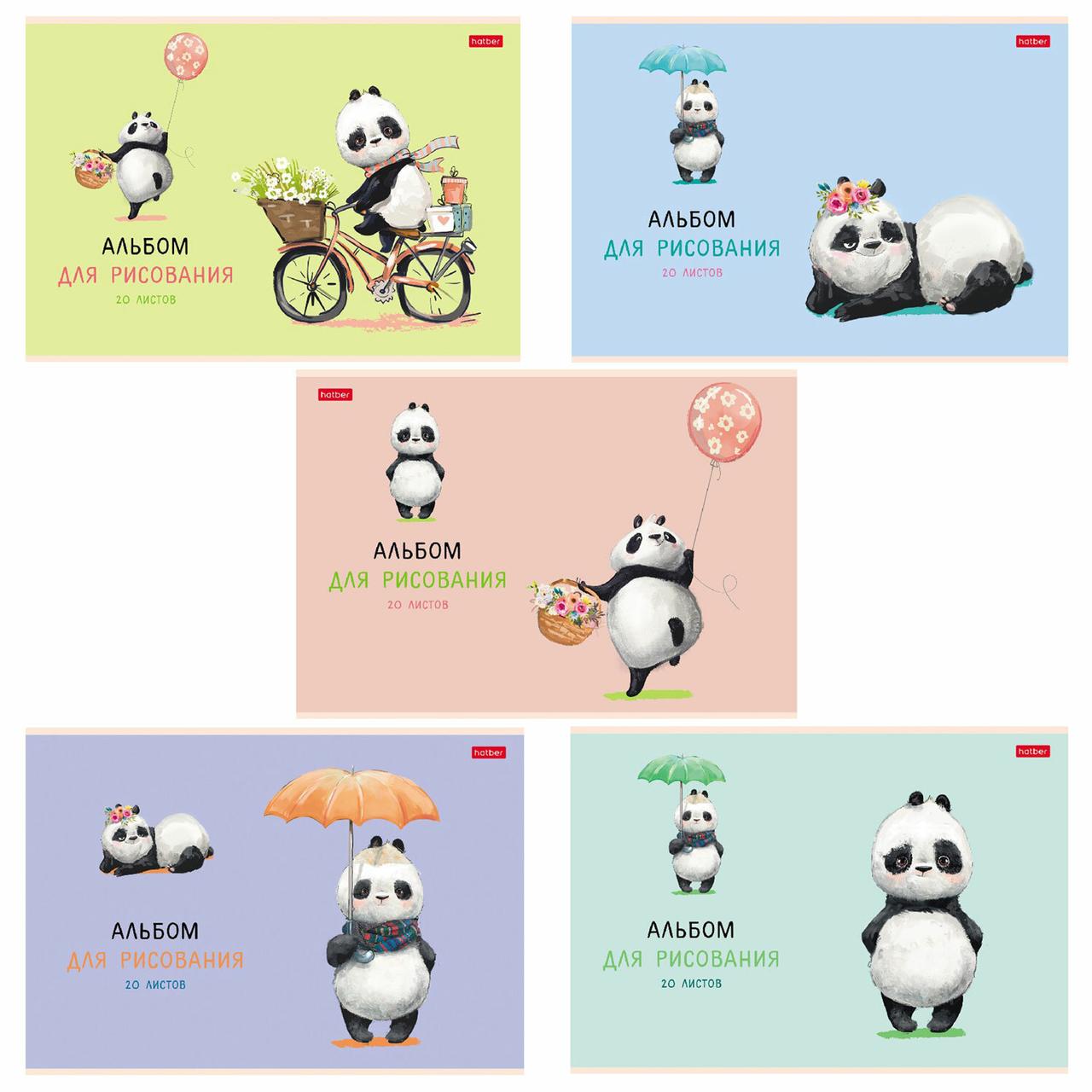 Альбом для рисования, А4, 20 л., скоба, обложка картон, ламинация, HATBER, 205х290 мм, "FunnyPanda" (5 видов)